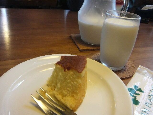 自慢の牛乳飲み放題と発酵バターケーキを。