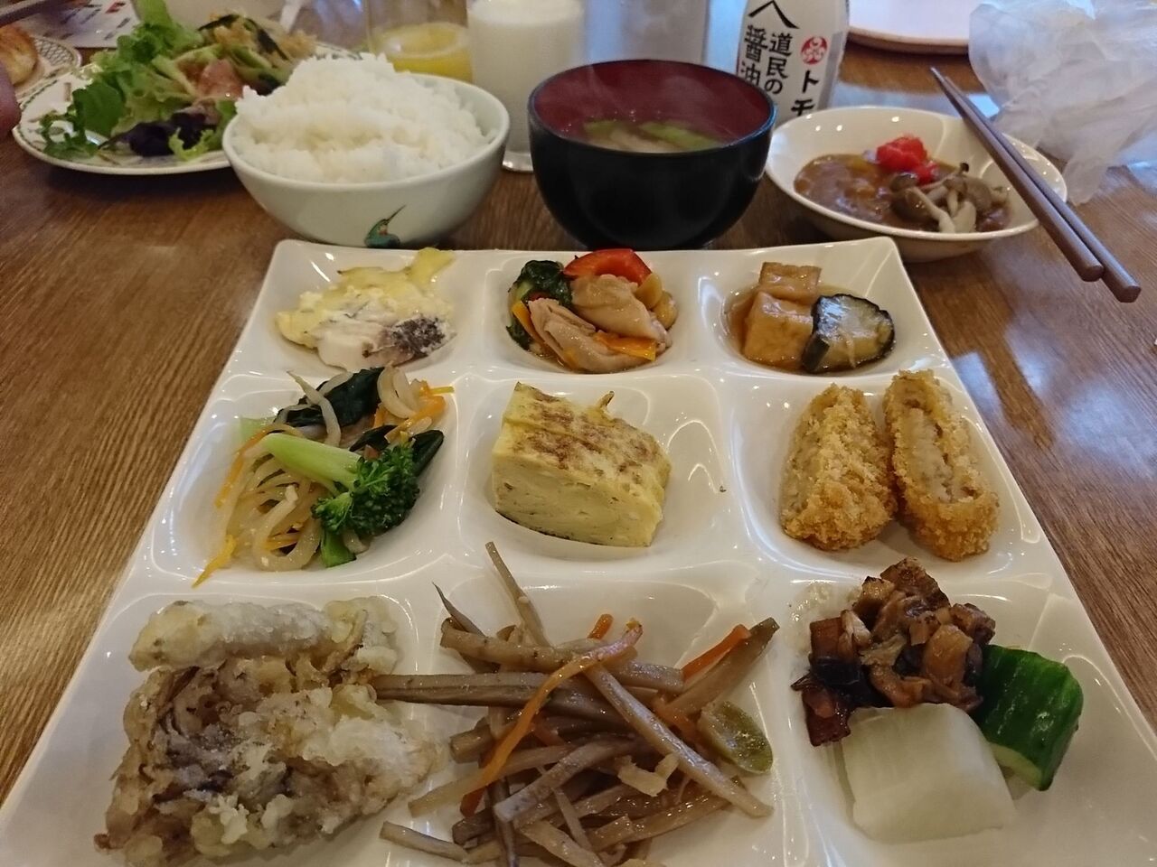 品数はさほど多くはないけど、地元の野菜を使った手作り料理が多く、どれもとても美味しい♪ドリンクバー無料