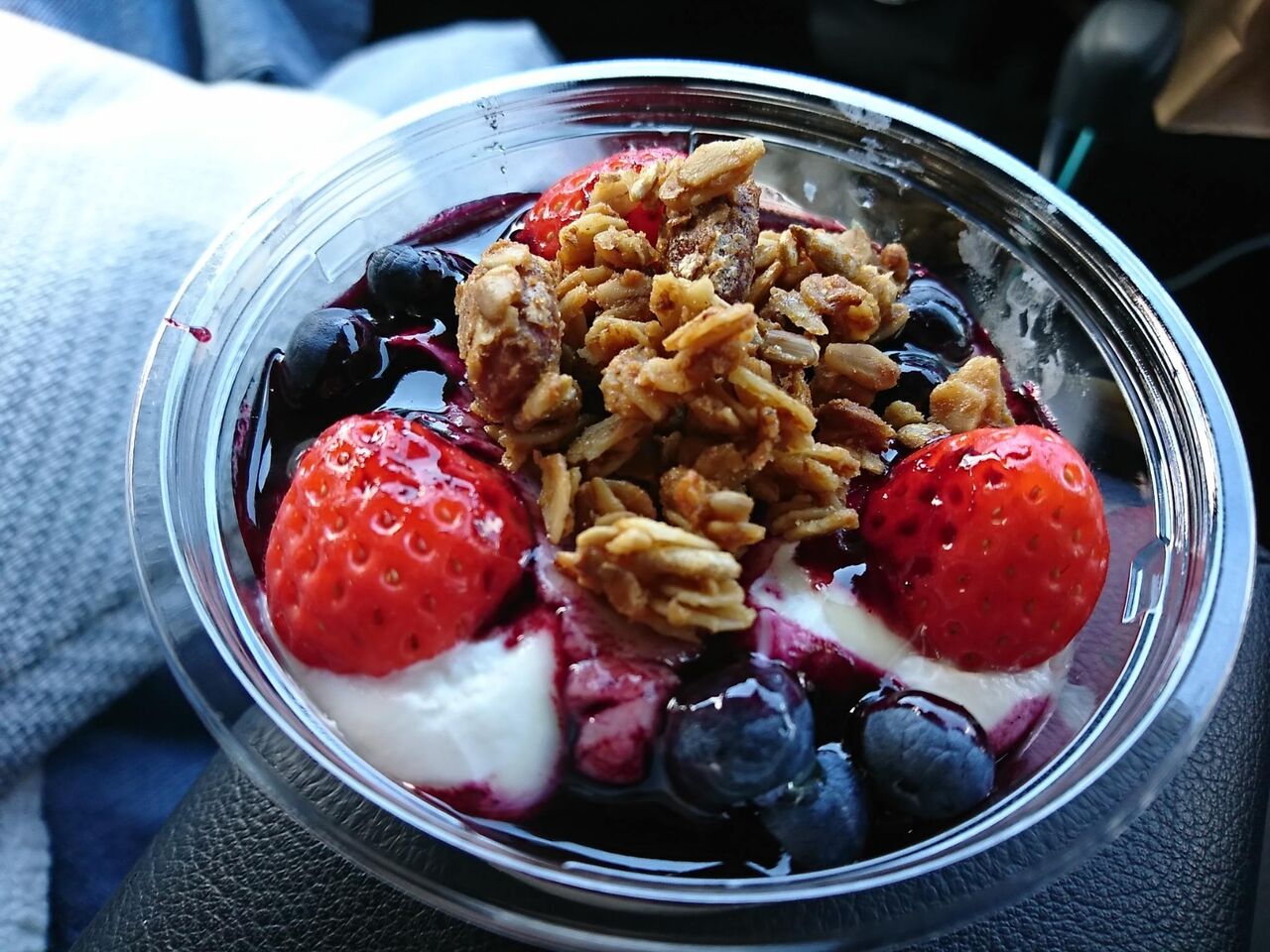 食後のデザートは音江の高台にあるギリシャヨーグルトのお店、テイクアウトで車内にて。景色最高~お洒落~