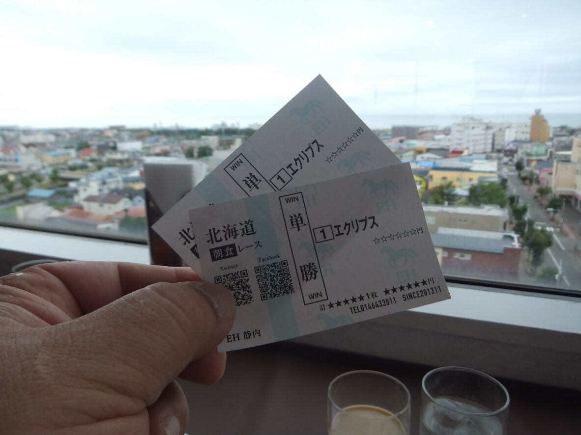 食券は馬の町らしい面白い馬券風で記念に持ち帰りO.K.