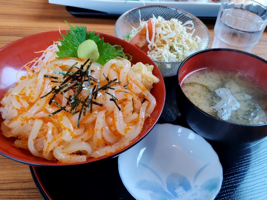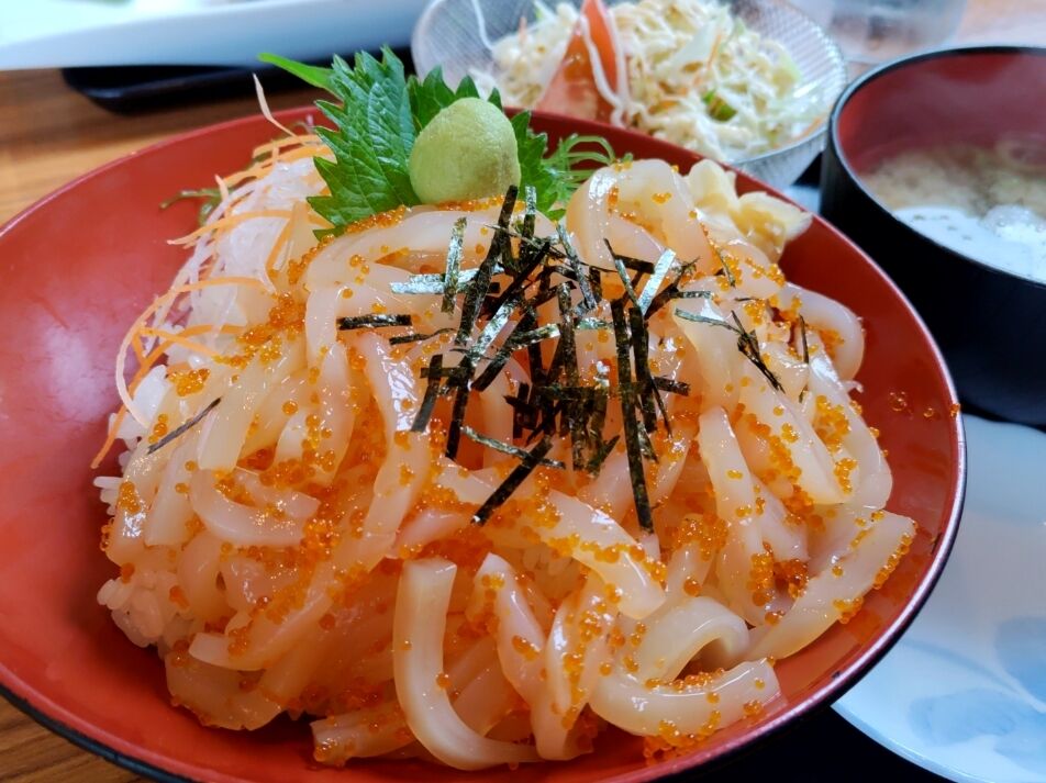 コリッコリの新鮮なイカにトビッコがまぶされた絶対旨い丼(≧∇≦)b