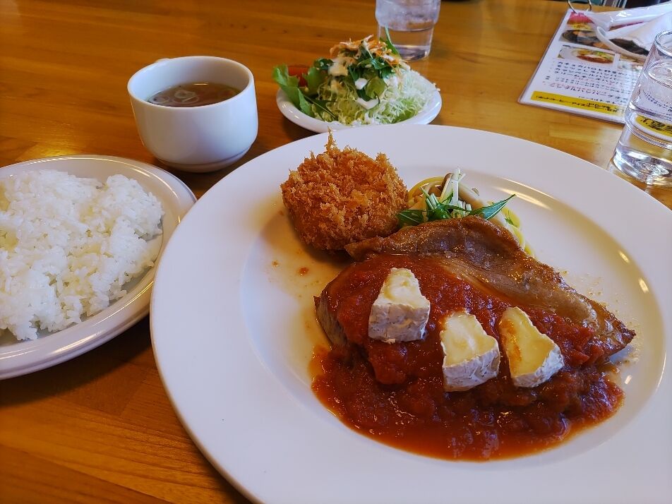 今回食べたのは、相方がホエー豚夢民豚を使ったロースソテーにカマンベールコロッケを単品で