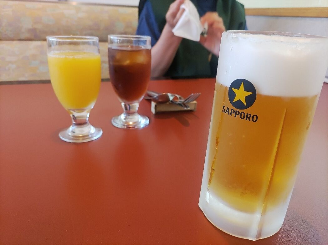 じゃらんから予約するとソフトドリンクがサービス。別料金の生ビールがキンキンに冷えていて超うまい!