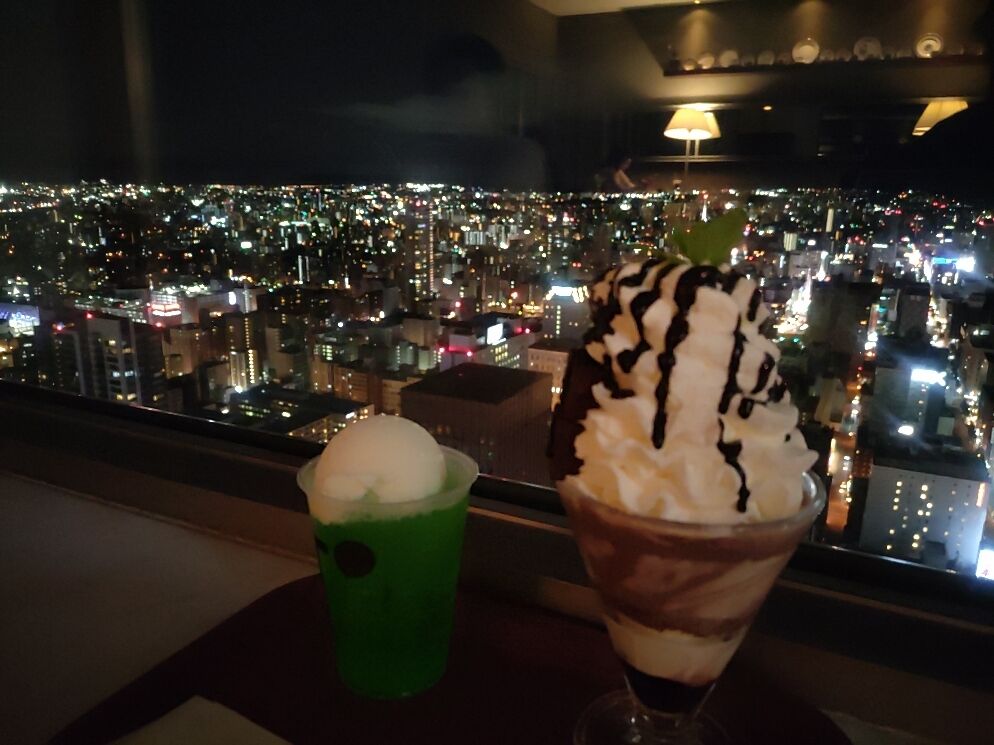 二次会はJRタワー展望台で〆パフェ