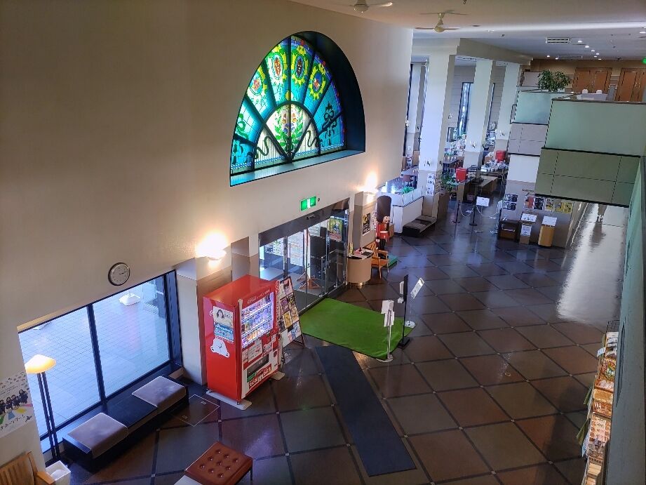 二階の吹き抜けからロビー付近を撮影。
