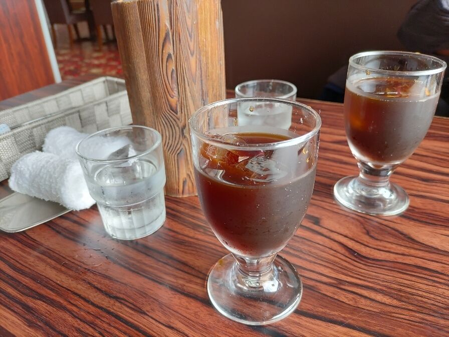 ドリンク付きのお得なランチをチョイス、アイス珈琲を先にもらい