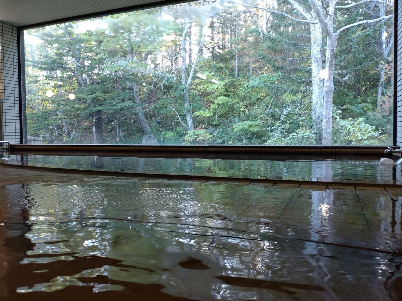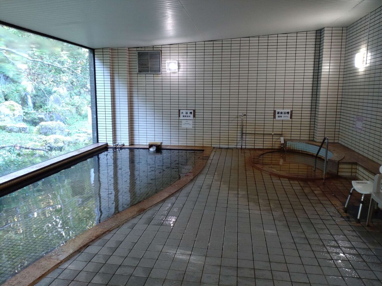 主浴槽は一応温泉、最大に手を加えているのであまり温泉感はないものの、大きな窓から見える四季折々の景色には癒されます
