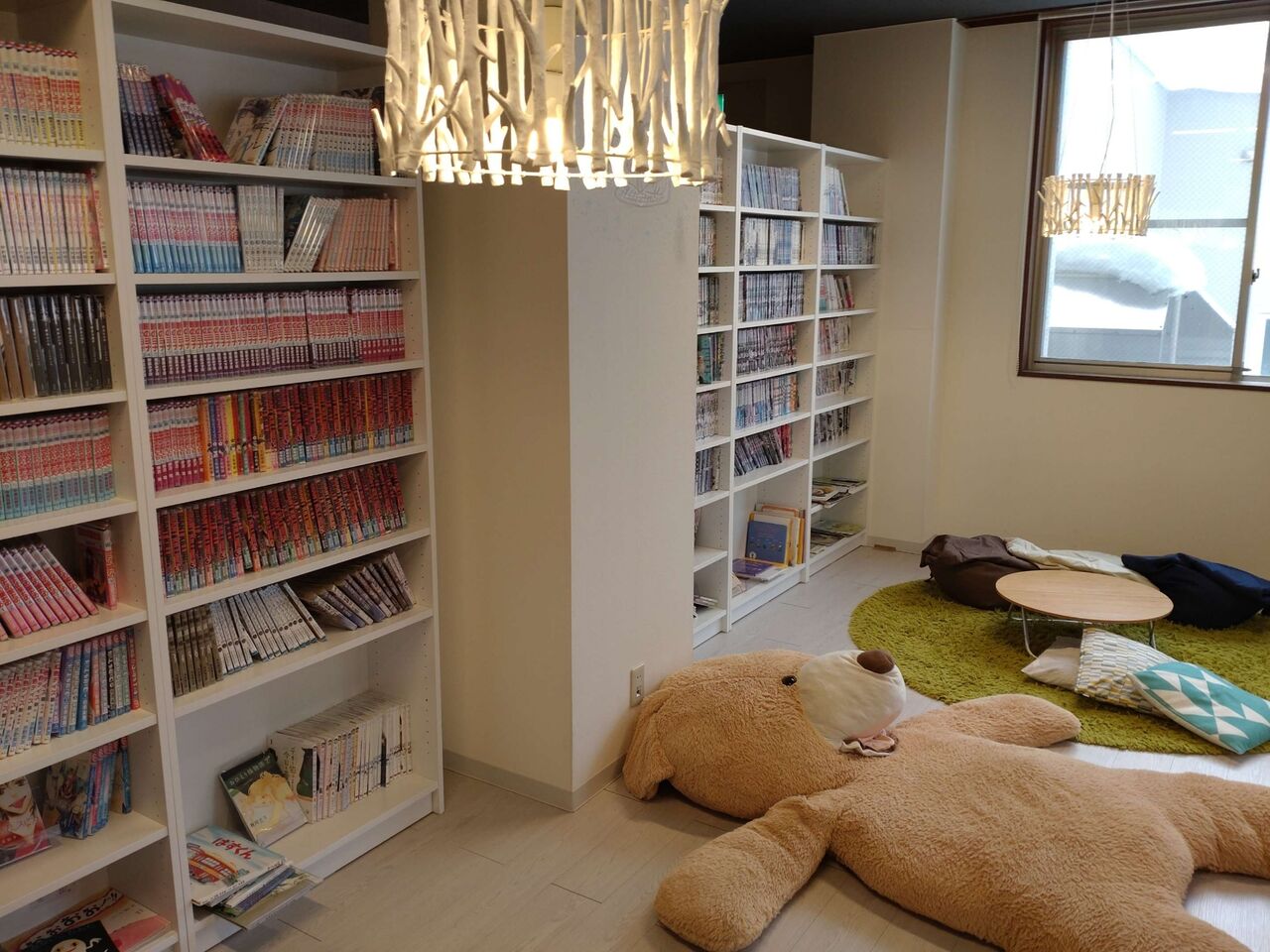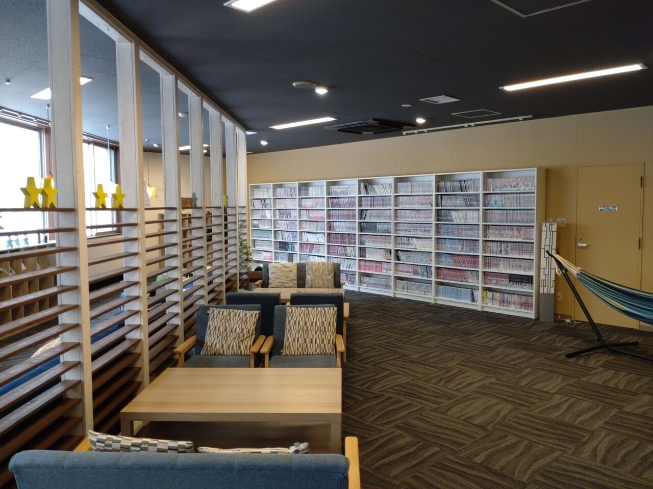 漫画本多数の休憩スペースもあり