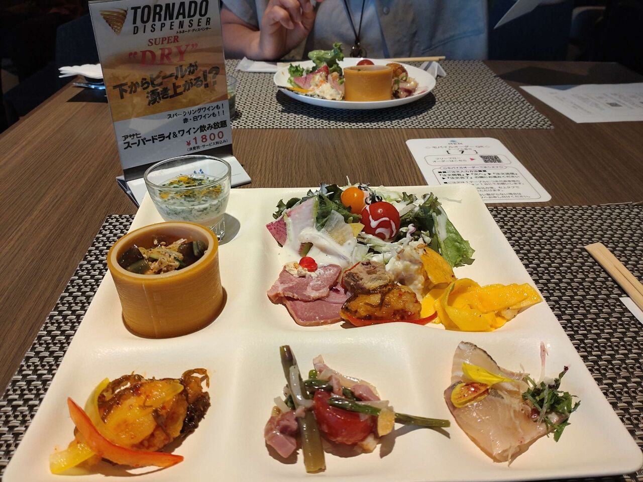 お客さんはほぼほぼ女子、ビュッフェ料理のクオリティが高いですね〜アルコール飲み放題もありますよ