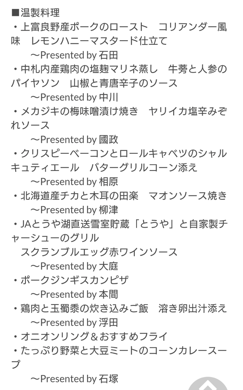 ライブキッチンでは料理人達が出来たての料理を提供してくれます、その他ビュッフェメニューも各料理人の創作料理だとか