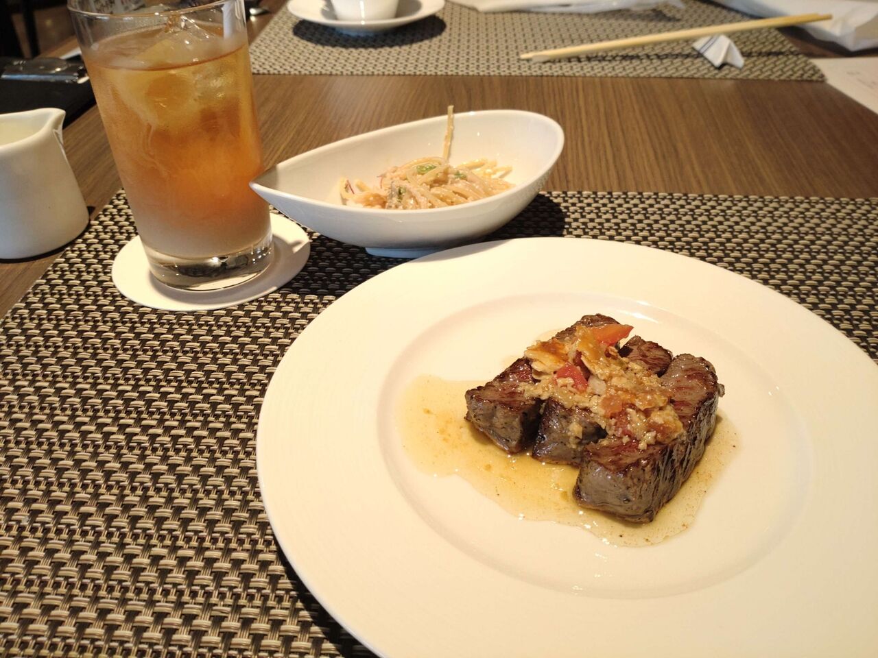 ライブキッチンで出来たてのステーキ、柔らかくてうまかった〜これ何度もおかわり