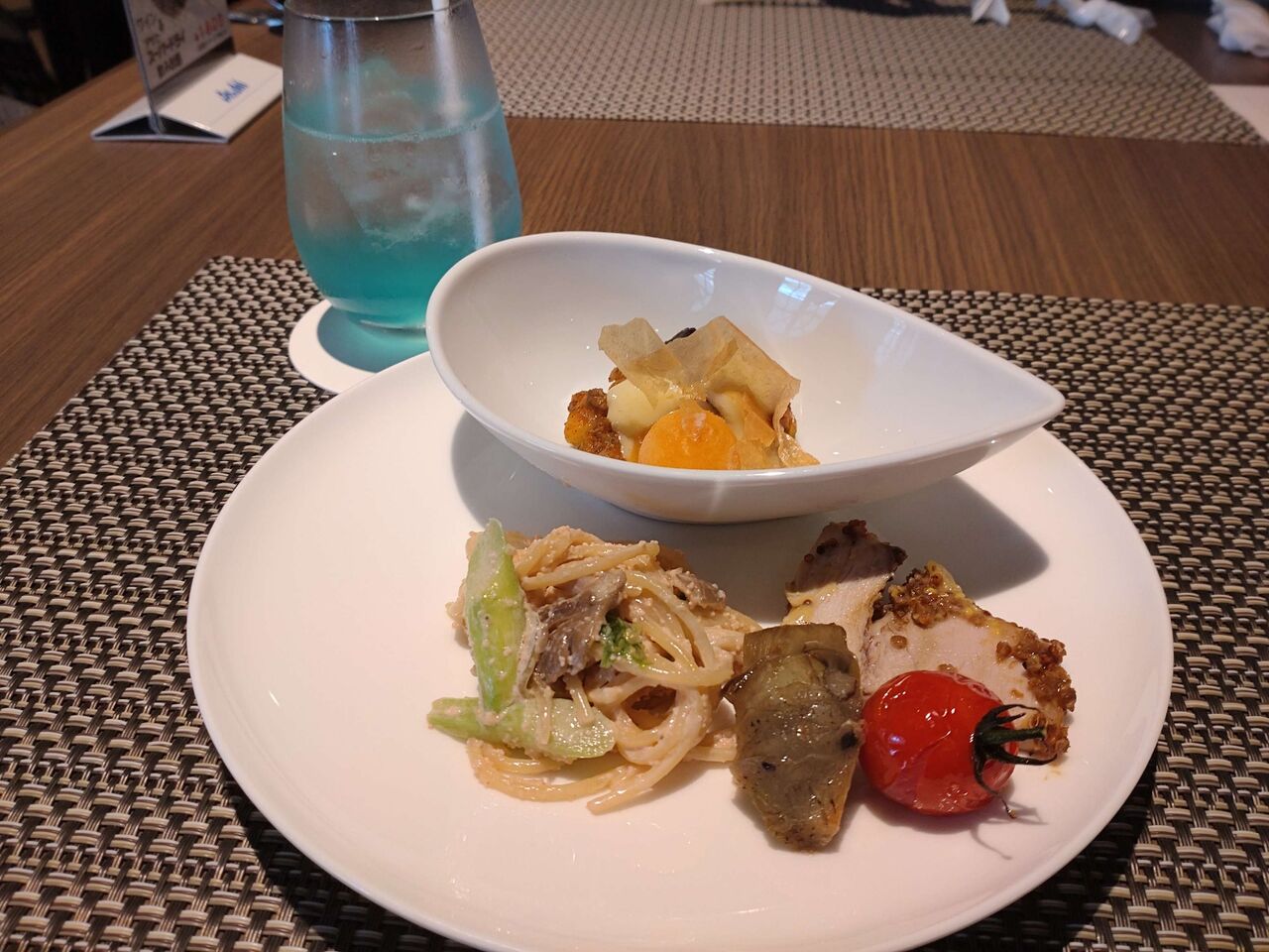 ライチの青いモクテル、なんのこっちゃかわからんかったけど、サイダーみたいなドリンクで凄く美味しい