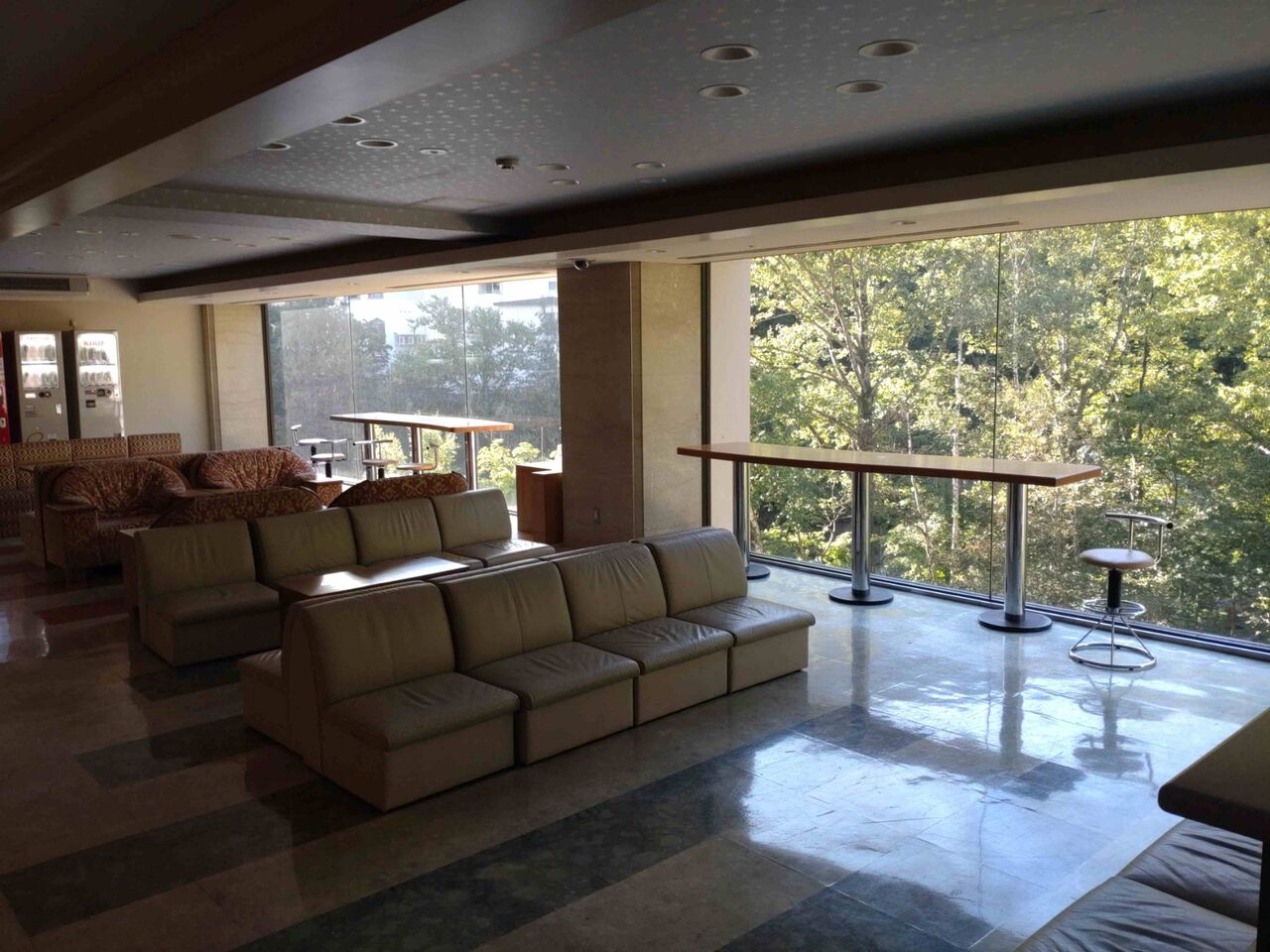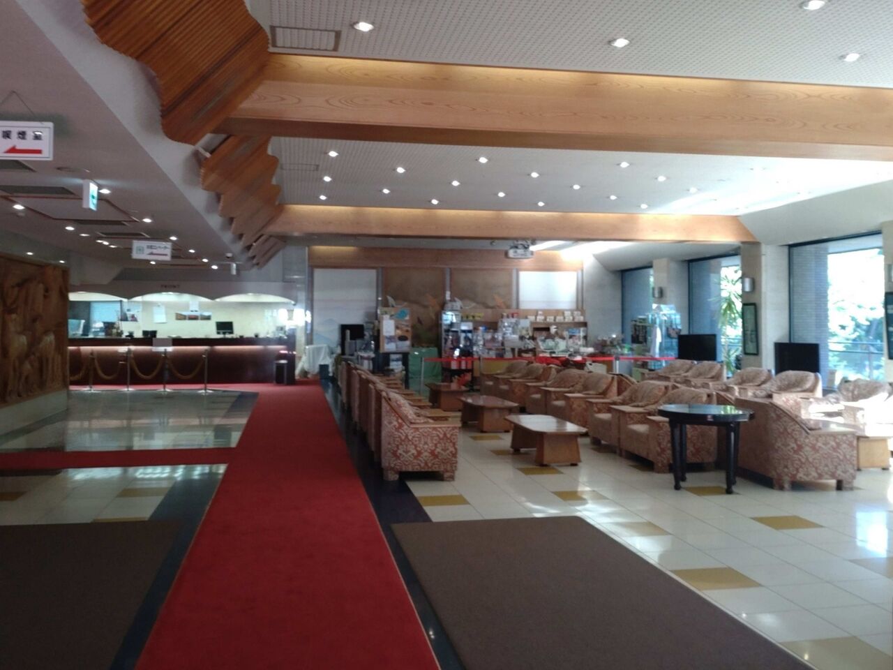構造上正面玄関の5階がフロント、ロビーの昭和風情が素敵ですね