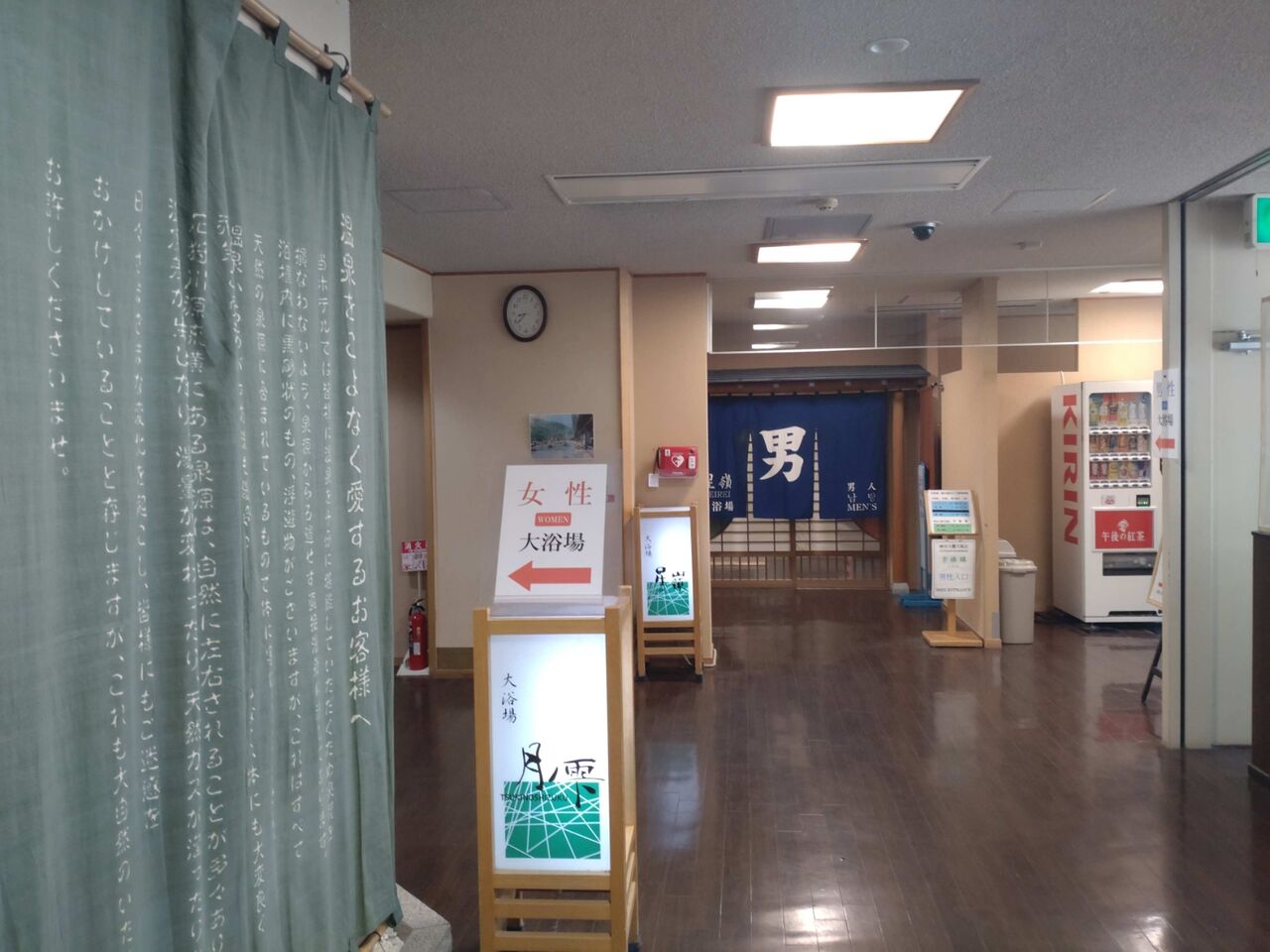 大浴場は二階、深夜の浴場入れ替えを挟み、朝9時半まで夜通し利用できます(浴室画像は公式サイトより引用)