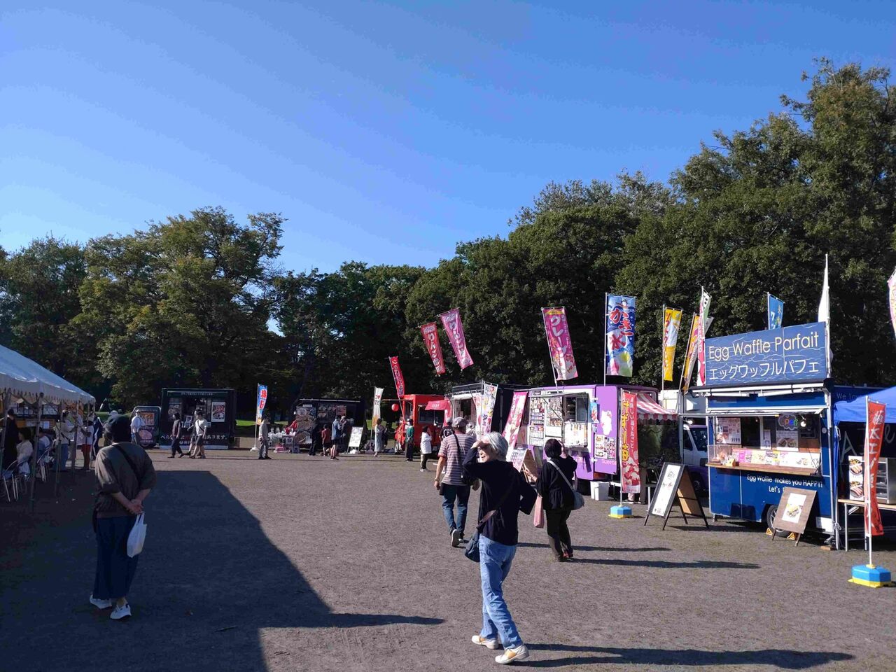 ここでもキッチンカーが並びマルシェを開催していました。日陰のある公園のベンチで食べるのもよいですね。