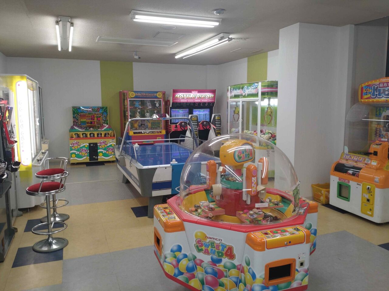 古めかしいゲームコーナーもレトロでよい感じ