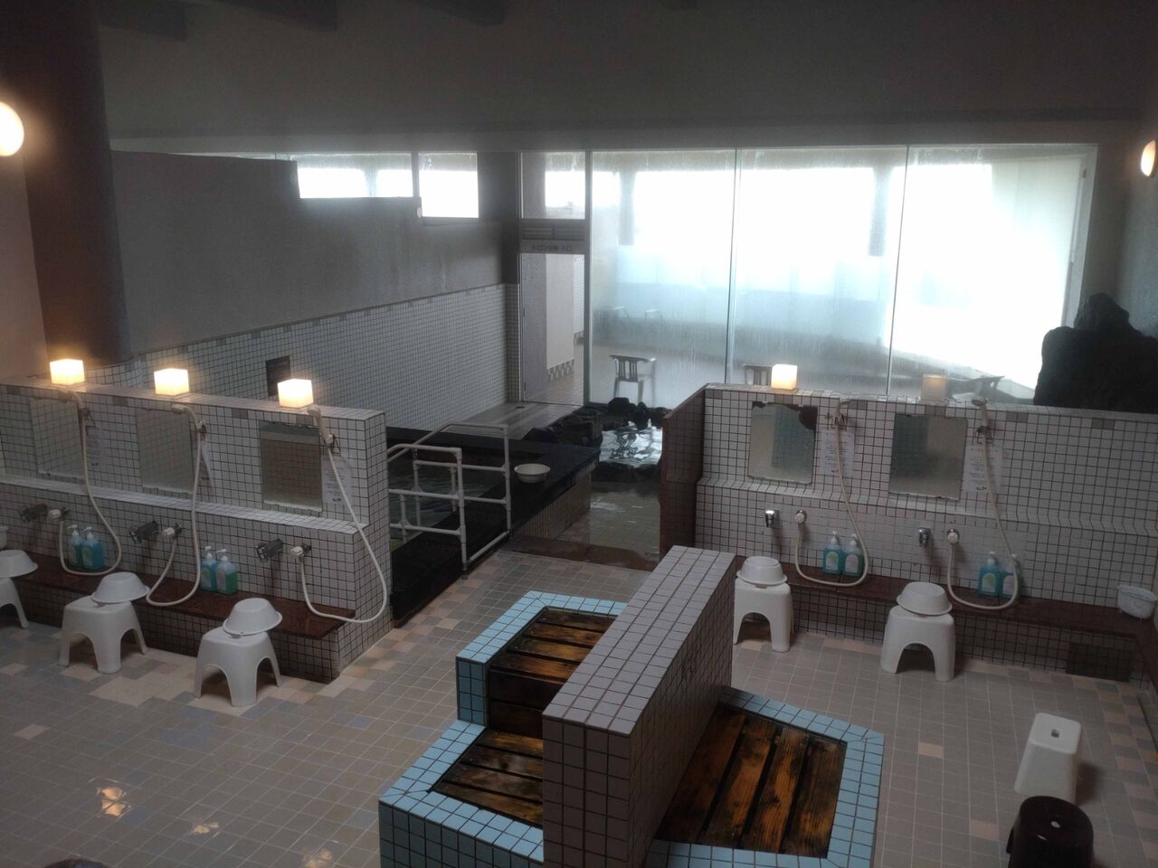 露天風呂風の内湯もあり、残念ながら景色は全く見れません