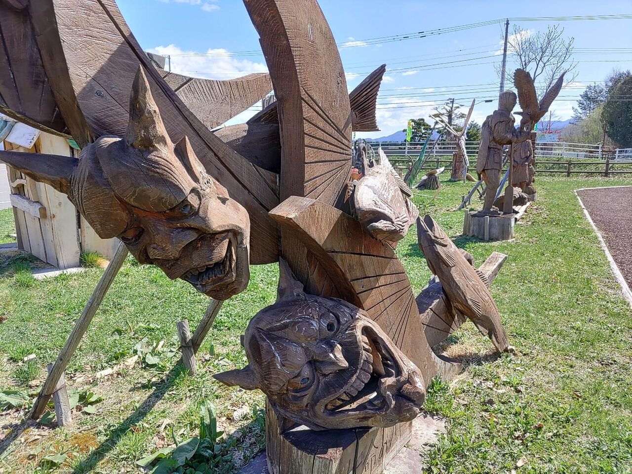 奥になんか並んでるな~と見に行くと、素晴らしく精巧にできたノコギリアート作品(チェーンソーアート)