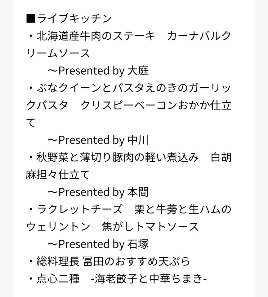 土日祝限定の9、10月、秋の新作ライブビュッフェ開催中