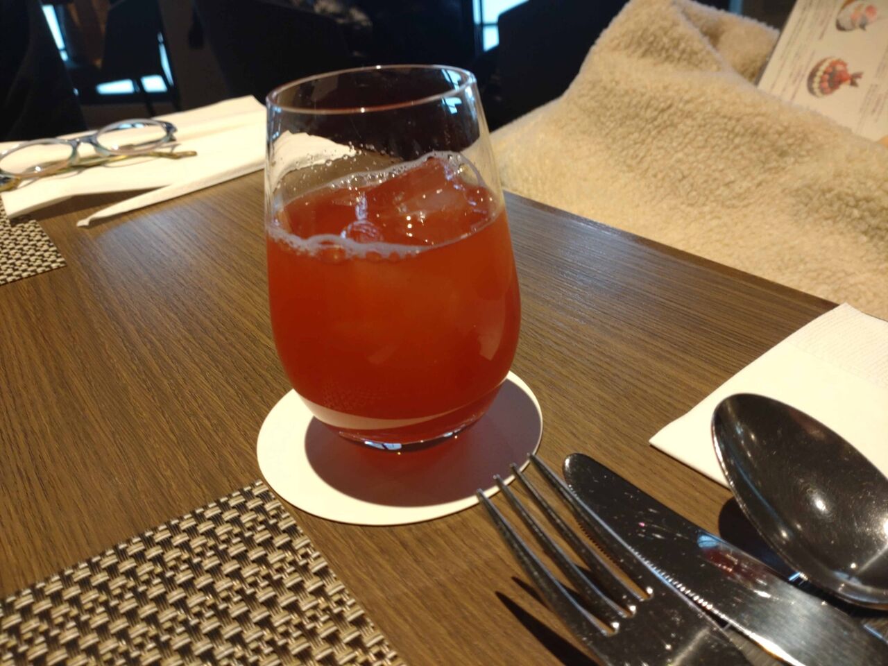 ドリンクはスマホ注文、9種類の飲み物がフリーフローで写真は苺のモクテル