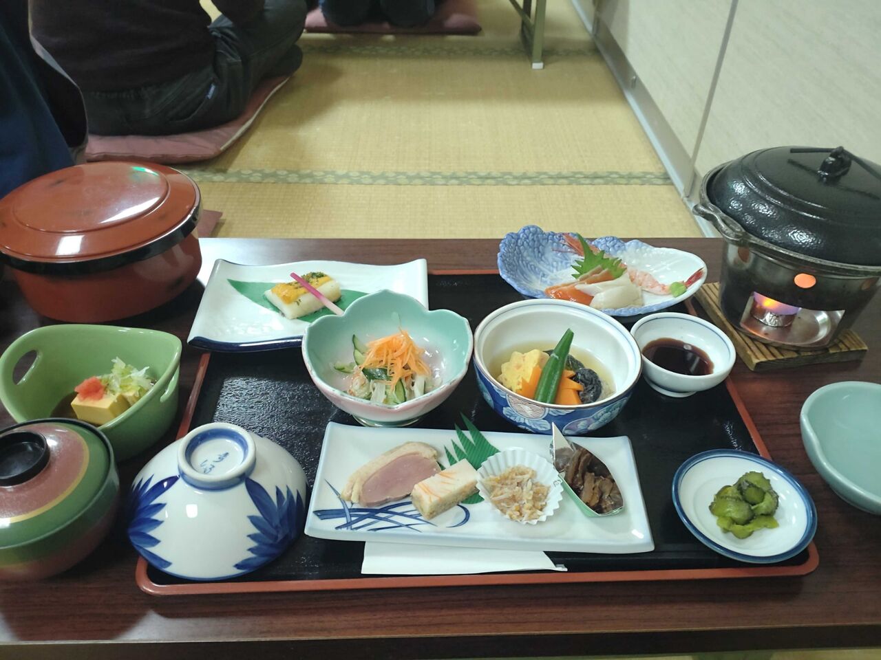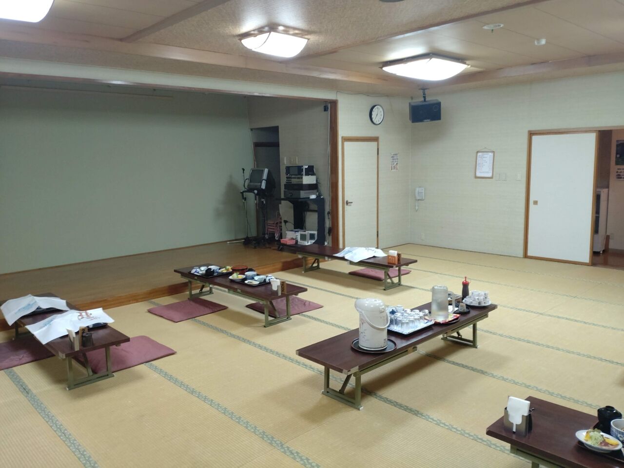 食事は二階宴会場に用意されていました。宿泊客の少ないときは一階の食堂のようです