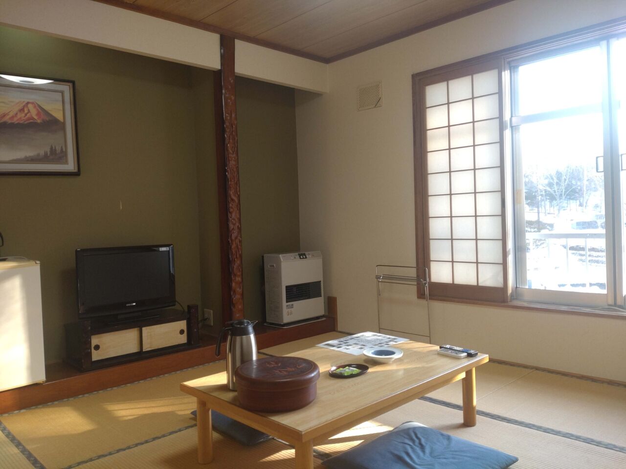 日当たり良好の和室、お外ではにゃんこがわらわら雪遊びしていました