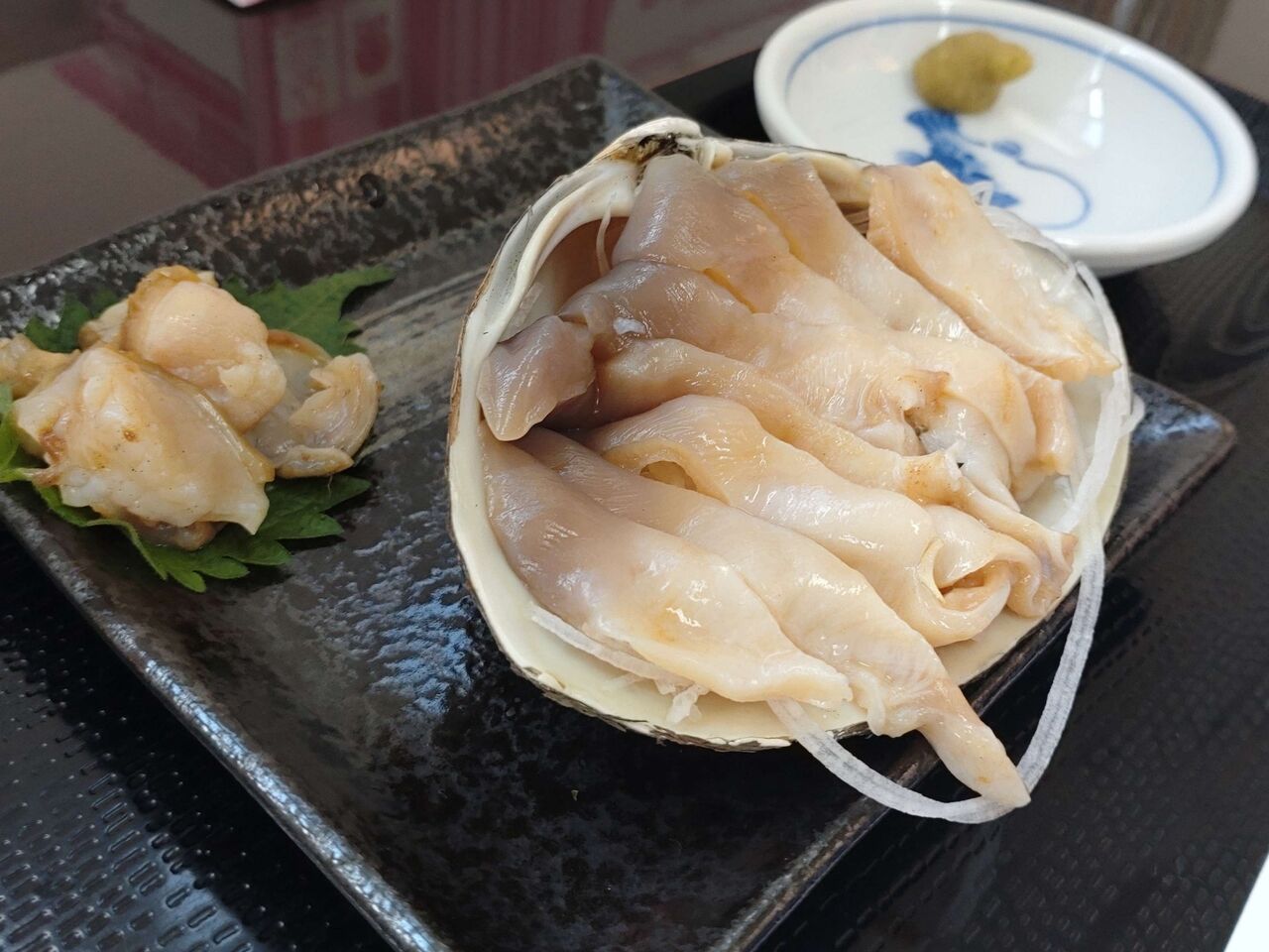 +ホッキ刺を単品で注文、こちらは500円と安価ながら超新鮮!