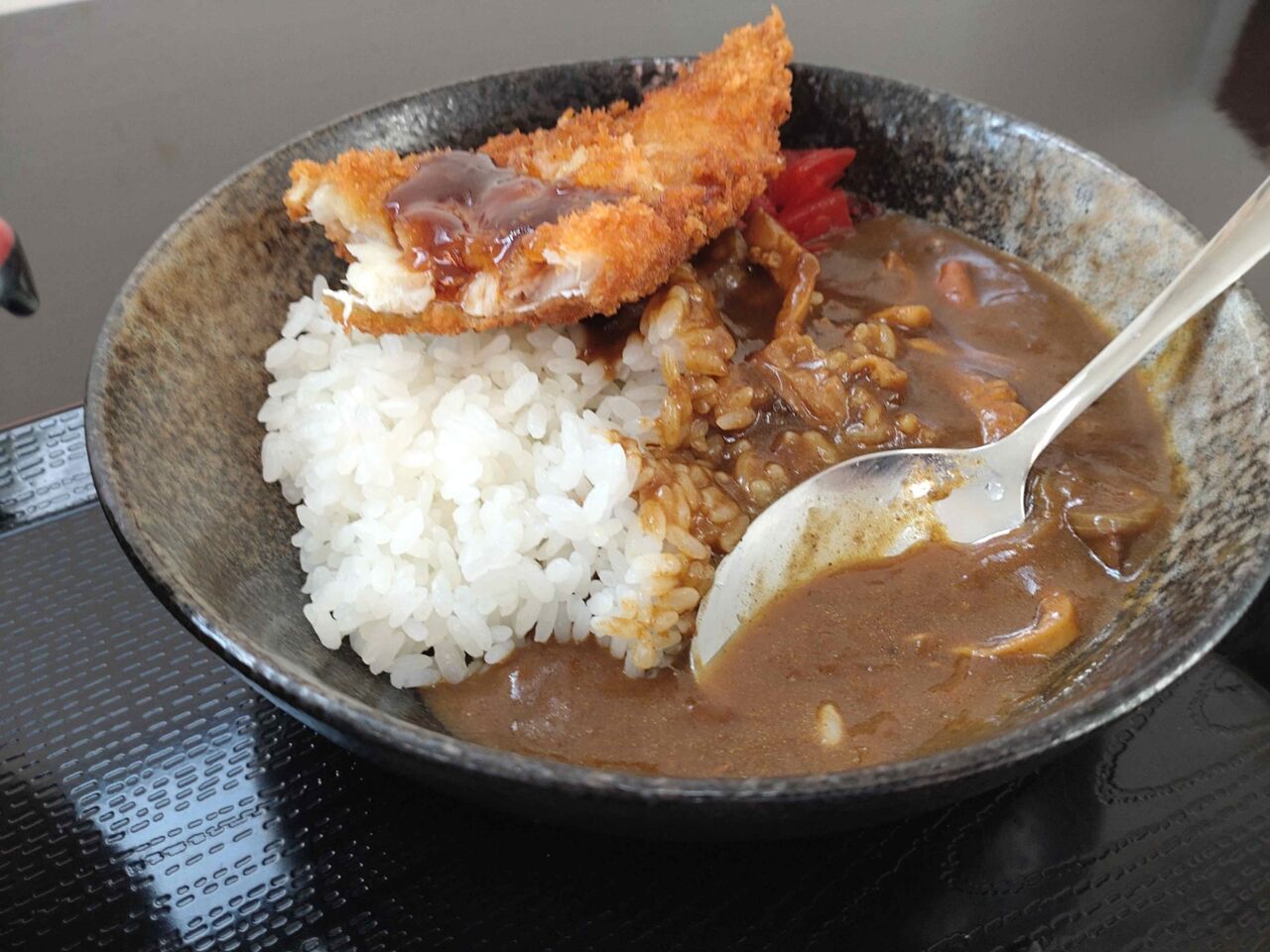 カレーに乗っけて、たらフライホッキカレーもまた旨い!