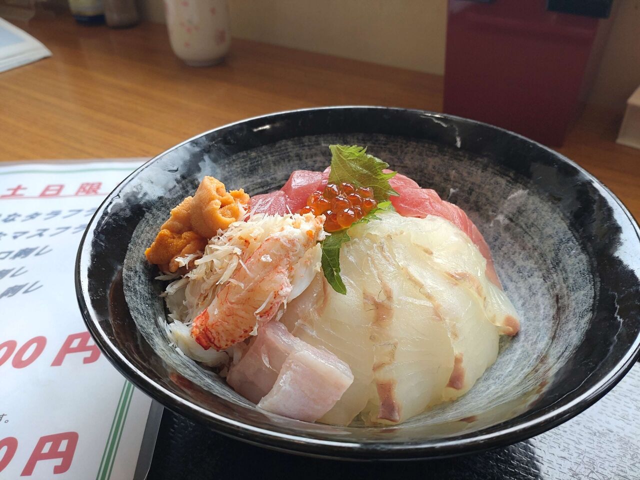相方は上海鮮丼+虎杖浜産雲丹を追加、なんて贅沢〜文句無しの美味さ