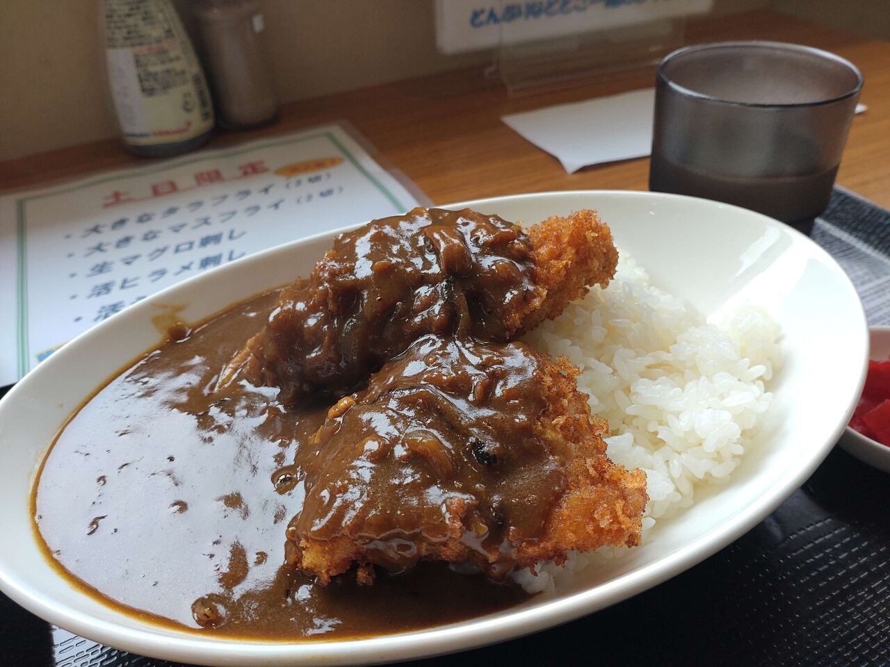 俺はタラフライカレー、揚げたてのタラフライはホクホクで辛口カレーとの相性も最高!