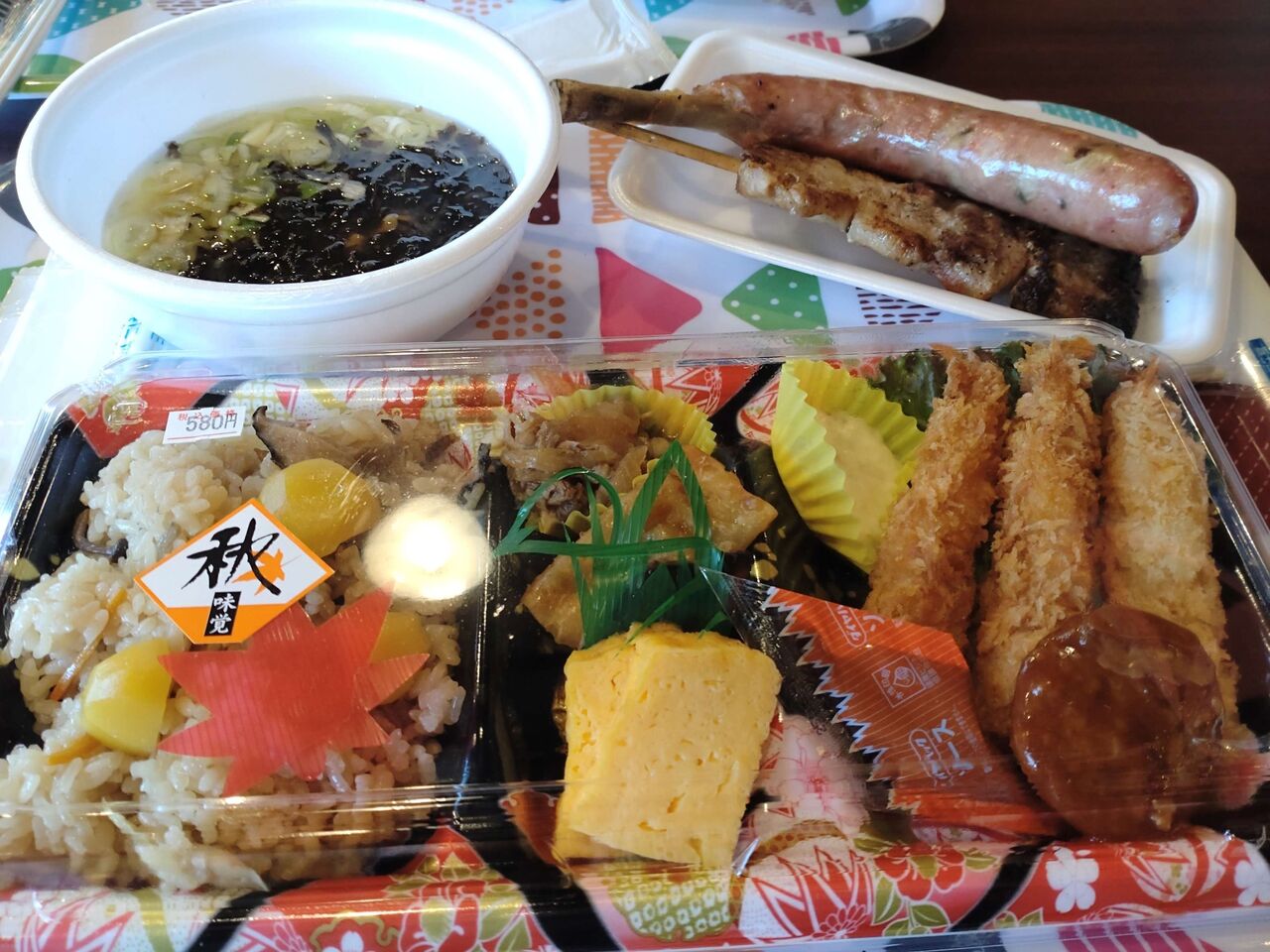 弁当ときのこ汁、フランクフルトに焼き鳥などなど。。ついつい買わさるラインナップ