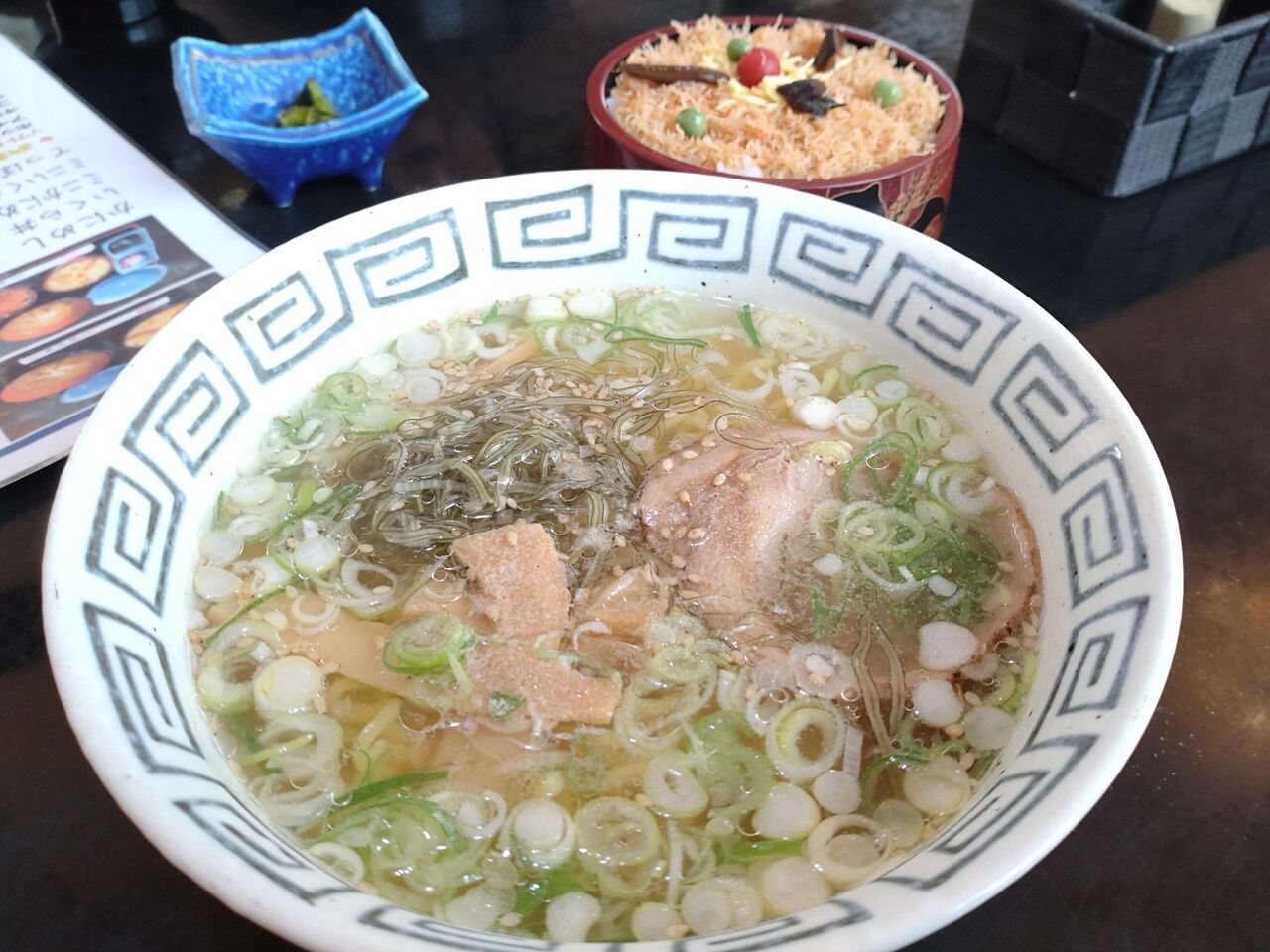 俺は道南名物ガゴメラーメンとミニ蟹めしのセットを、ミニ蟹めしは上げ底でホント少量wガゴメ昆布の入ったトロッとした塩ベースのスープでこれまた旨いな〜