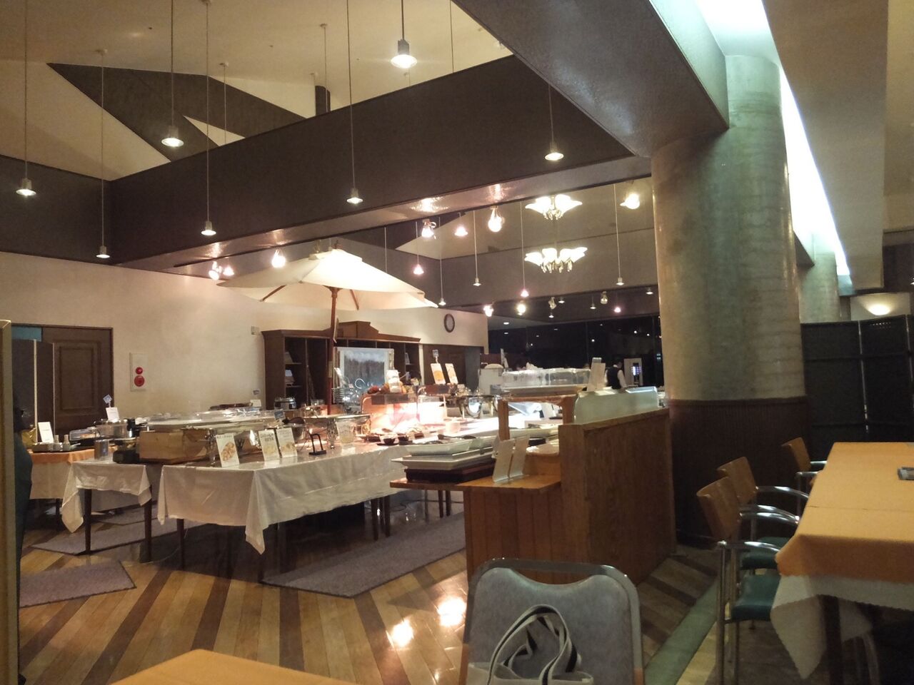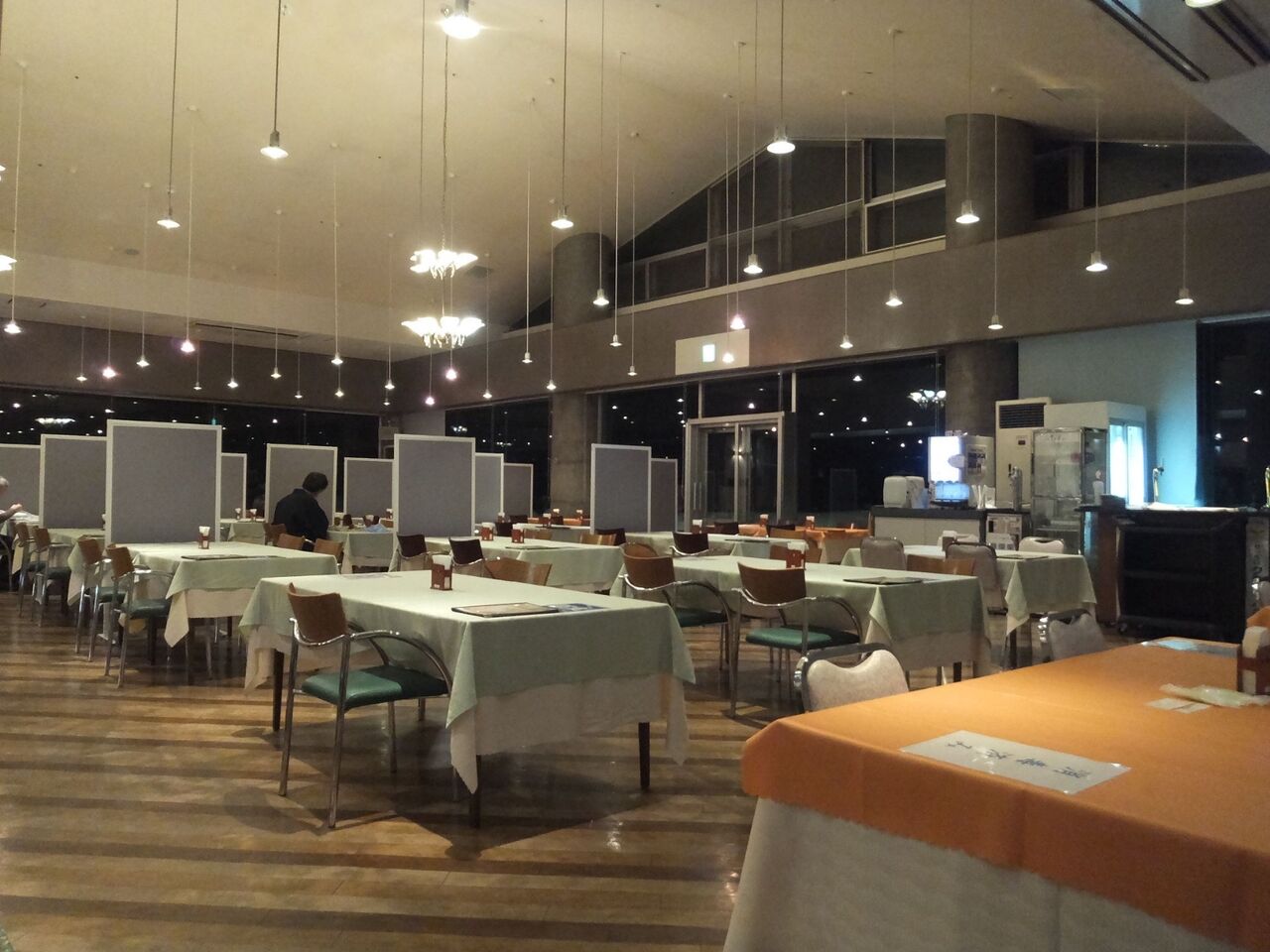 広ーい食事会場で照明もカッコいいな~