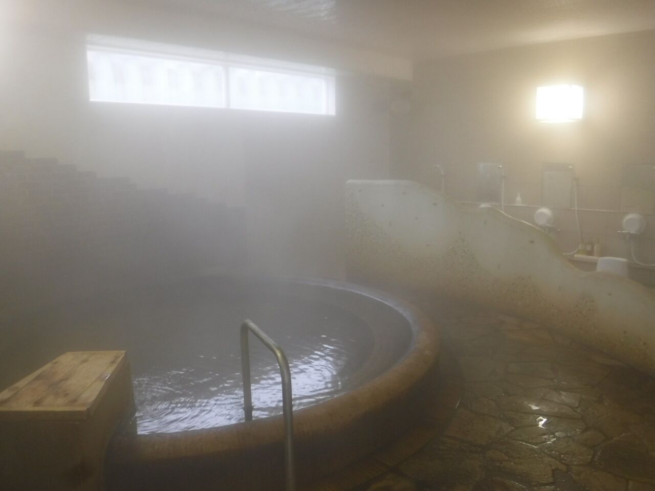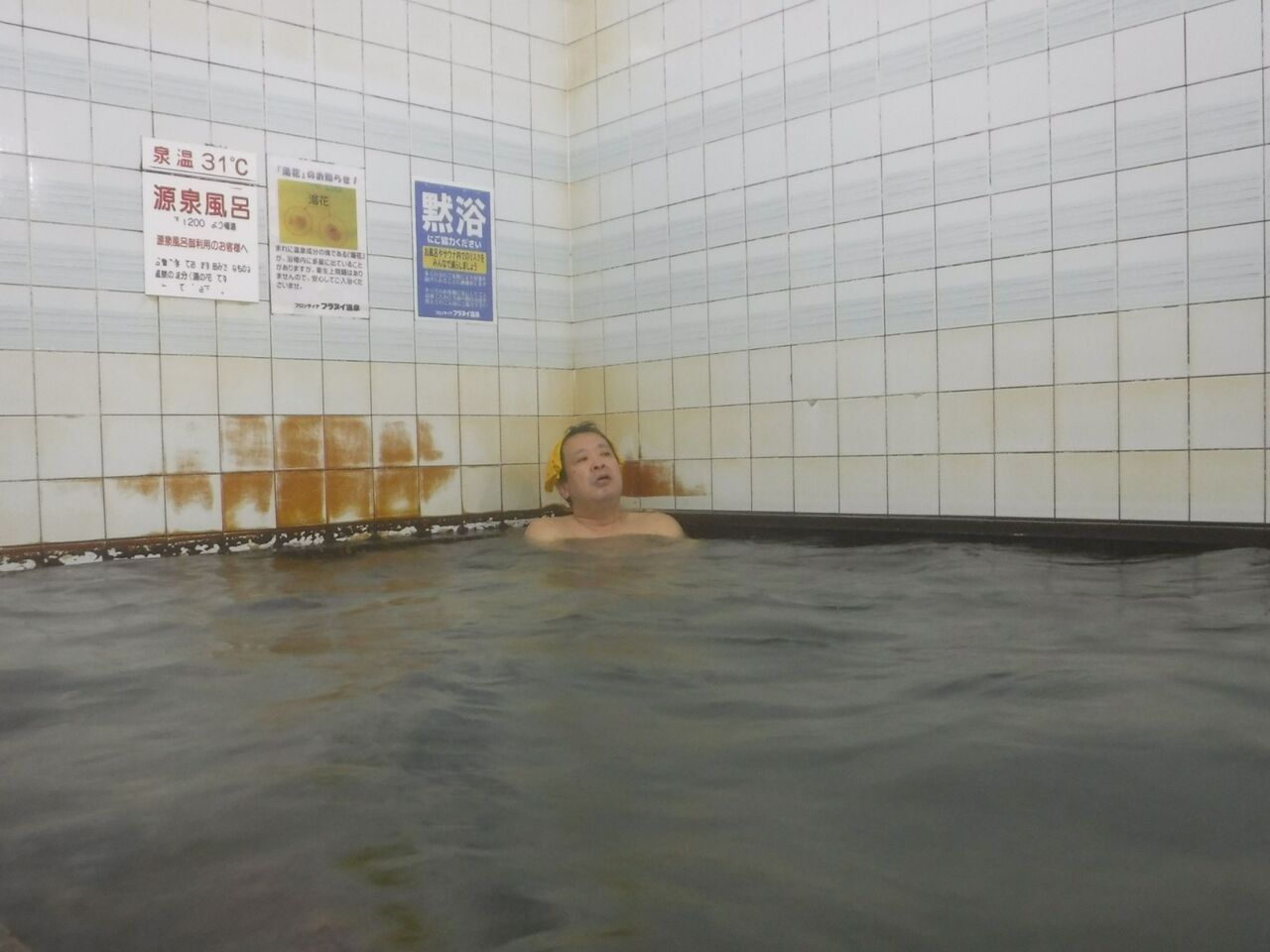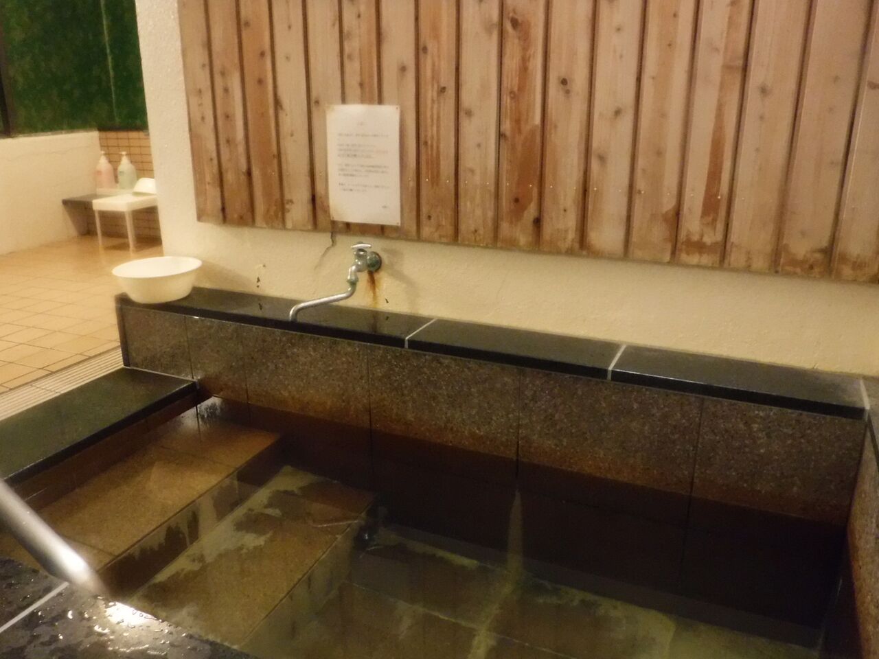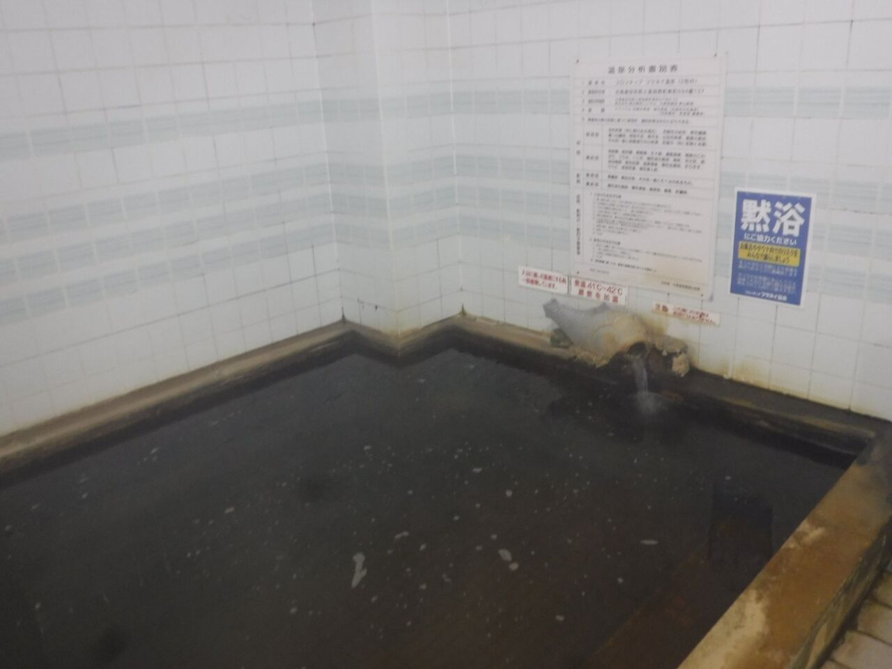 お湯は細かな湯華が多量に舞う含塩化土類-芒硝泉♨️加水ありの掛け流し