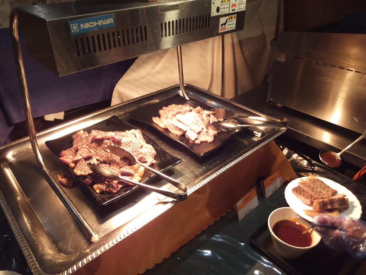 自分で焼く陶板焼きコーナーは羊と鹿肉ジンギスカン