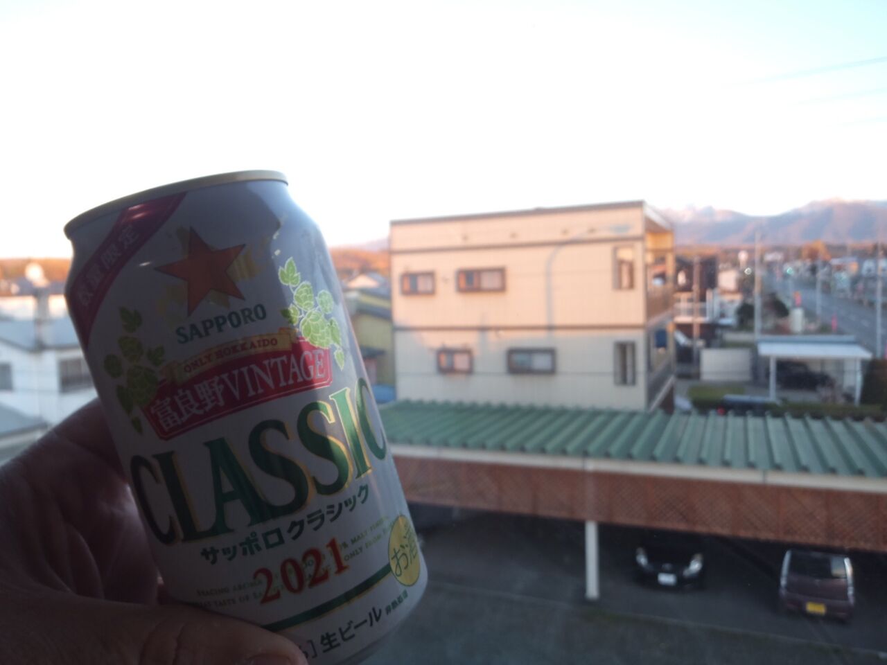 写真ではわからないけど遠くに雪化粧した十勝岳が見えます