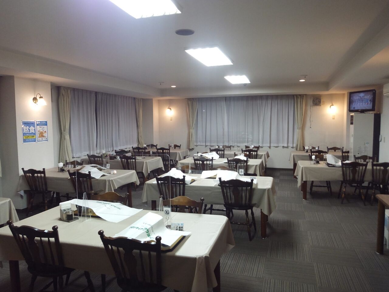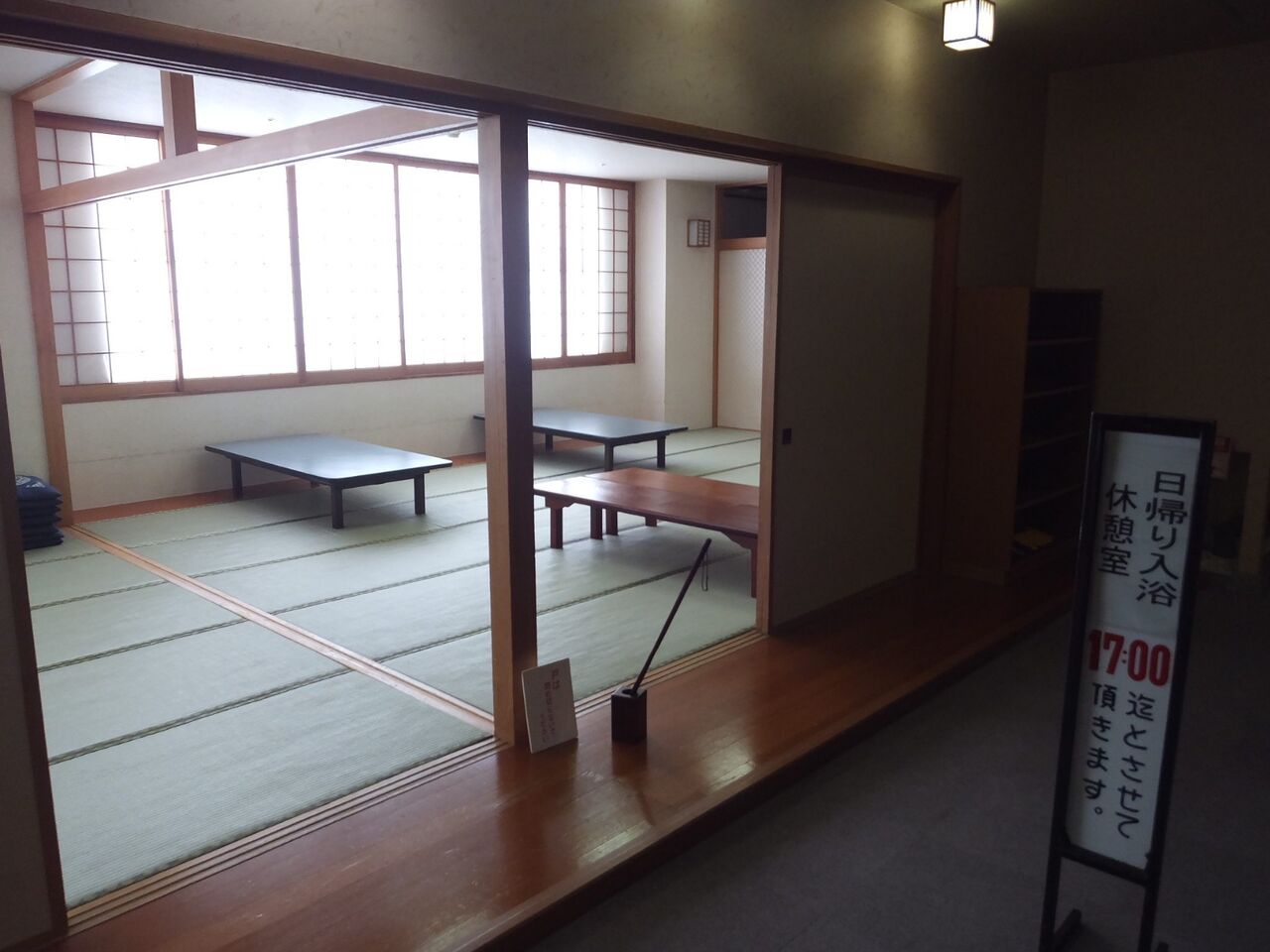 宴会場を日帰り入浴客の休憩スペース用に17時まで解放していました