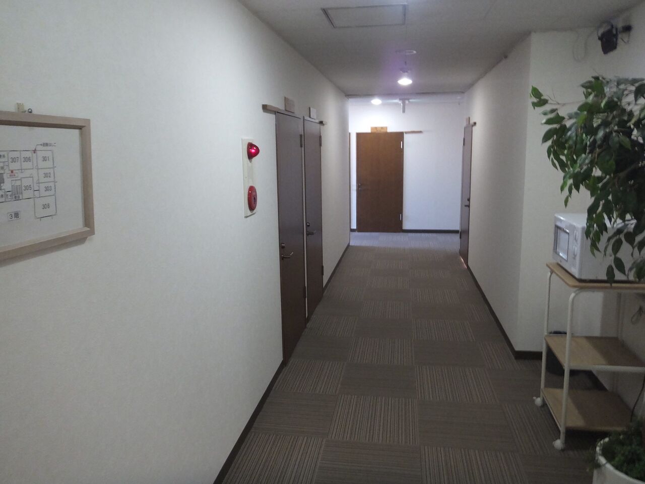 部屋は三階、電子レンジもありましたよ